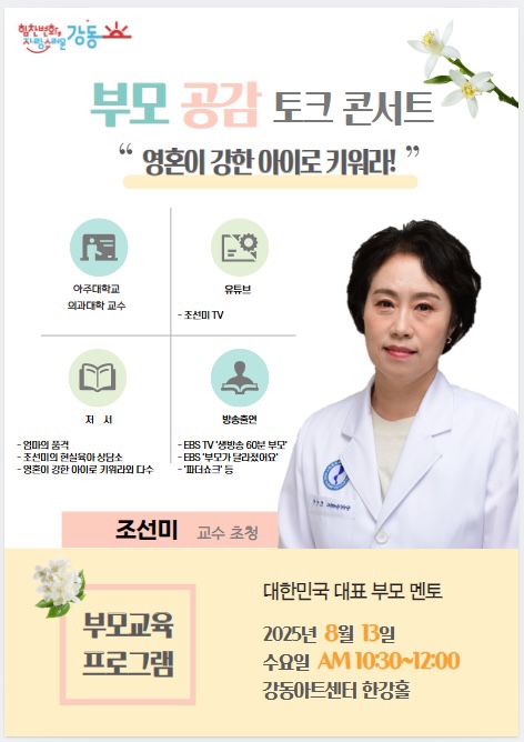 #조선미교수 #현실육아솔루션 #영혼이강한아이 #자존감 #감정알아차리기 #부모교육 #긍정육아 #아이성장 #회복탄력성 #부모공감토크콘서트 #강동구행사 #육아정보